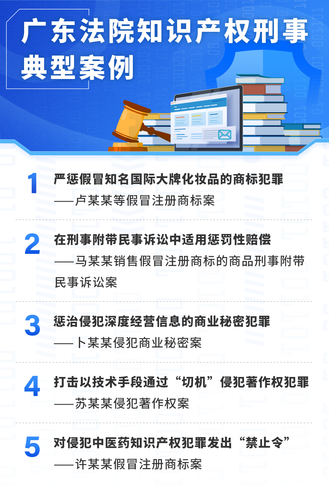 这次共发布5个案例,这些案例反馈了广东法院充分阐扬刑事审判惩治和震慑常识产权犯罪的职能作用,为发展新质坐蓐力蓄势赋能。在卢某某等假冒海外著名化妆品注册商标案中,犯罪贪图数额达1.4亿余元,法院照章从重惩处,对主犯判处2000万元高额罚款,铲除犯罪分子“卷土重来”的经济根基;在卜某某骚扰营业奥密案中,法院照章认定深度客户信息属于营业奥密,有用地爱戴了企业的市集竞争力,对企业普及营业奥密保护意志具有警示酷爱;在苏某某骚扰文章权案中,法院照章厘清了“切机”时期龙套时期法式的法律性质,体现了东说念主民法院处理新式复杂法律关系、打击涉数据常识产权犯罪的坚决决心。
